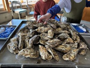 青森はホタテ味噌→仙台は蒸し牡蠣(これ2人前 💦)