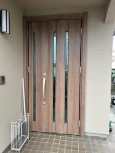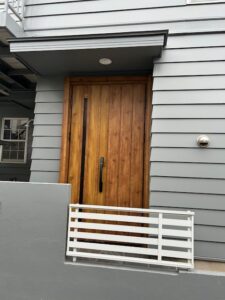 藤沢市 M様邸Y社 before after ラップサイディングのシリコンはこんな感じで全開時に親ドアがフェンスに当たる為、